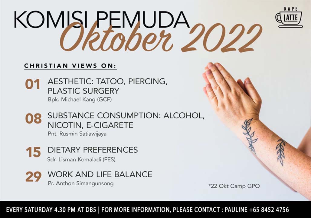 Every Saturday 4.30 PM AT DB5 | For More Information, Please Contact: Pauline +65 8452 4756