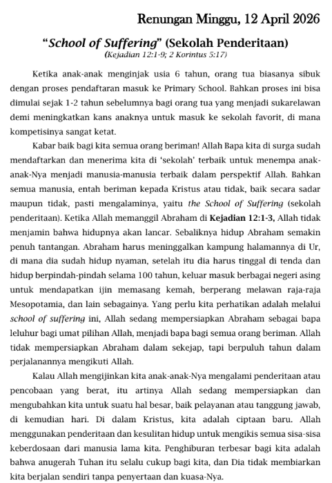 12 April 2026 , Jemaat dapat membaca melalui pdf dibawah ini.”