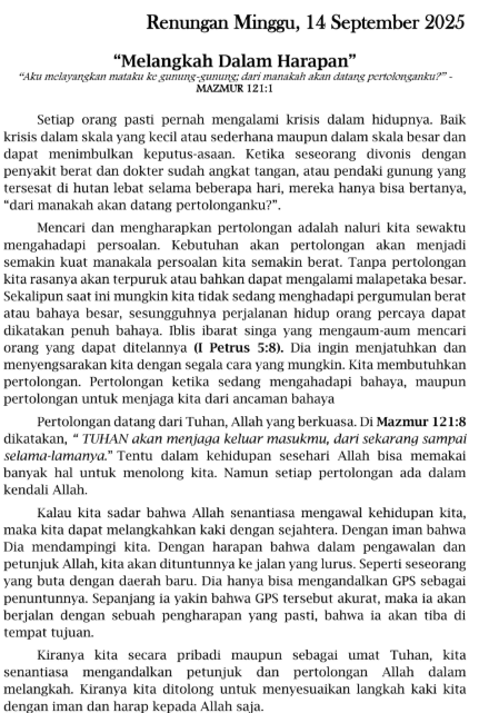 14 September 2025 , Jemaat dapat membaca melalui pdf dibawah ini."