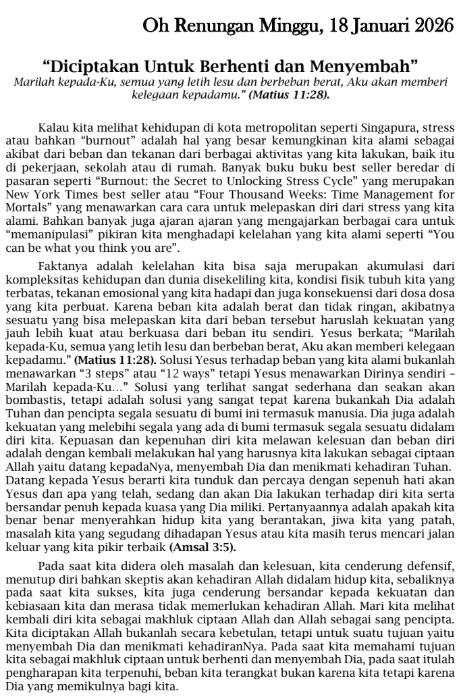 Warta Minggu 18 Januari 2026