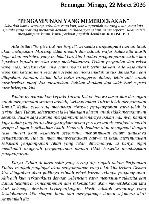 22 Maret 2026 , Jemaat dapat membaca melalui pdf dibawah ini.”
