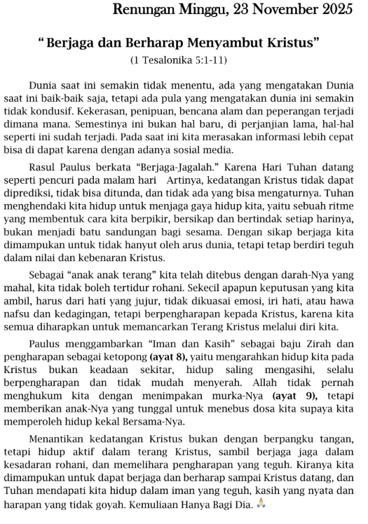 23 November 2025 , Jemaat dapat membaca melalui pdf dibawah ini.”