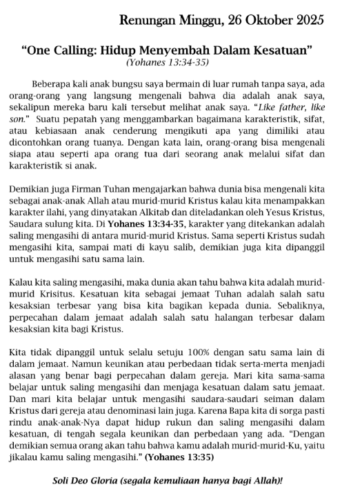 26 Oktober 2025 , Jemaat dapat membaca melalui pdf dibawah ini.”