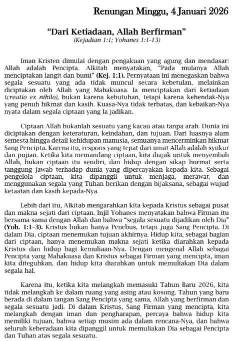 4 Januari 2026 , Jemaat dapat membaca melalui pdf dibawah ini.”