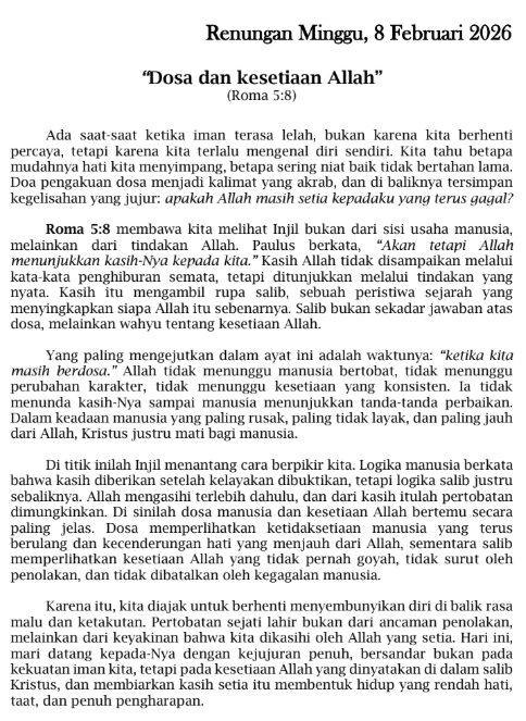 Warta Minggu 8 Februari 2026